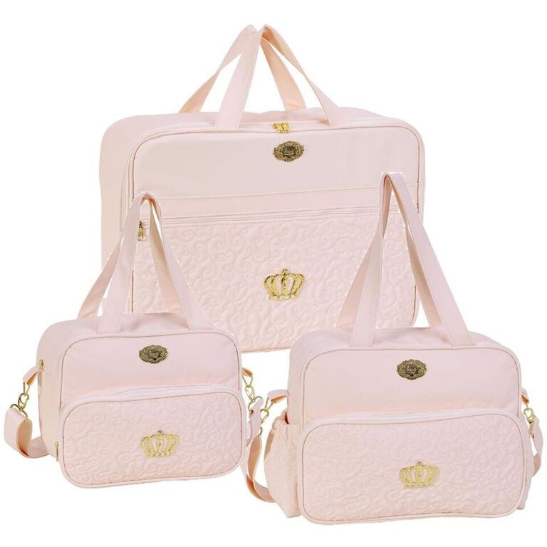 Kit 2 Bolsas Maternidade Coroa Rosa Claro
