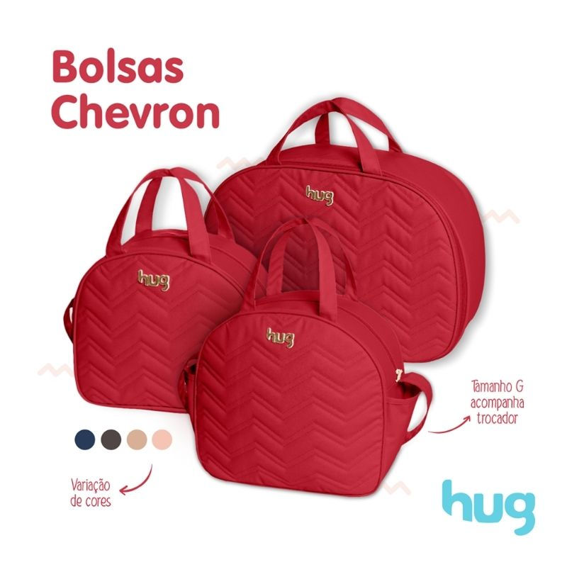Kit Bolsa Maternidade 3 Peças Chevron Vermelho - Hug Baby